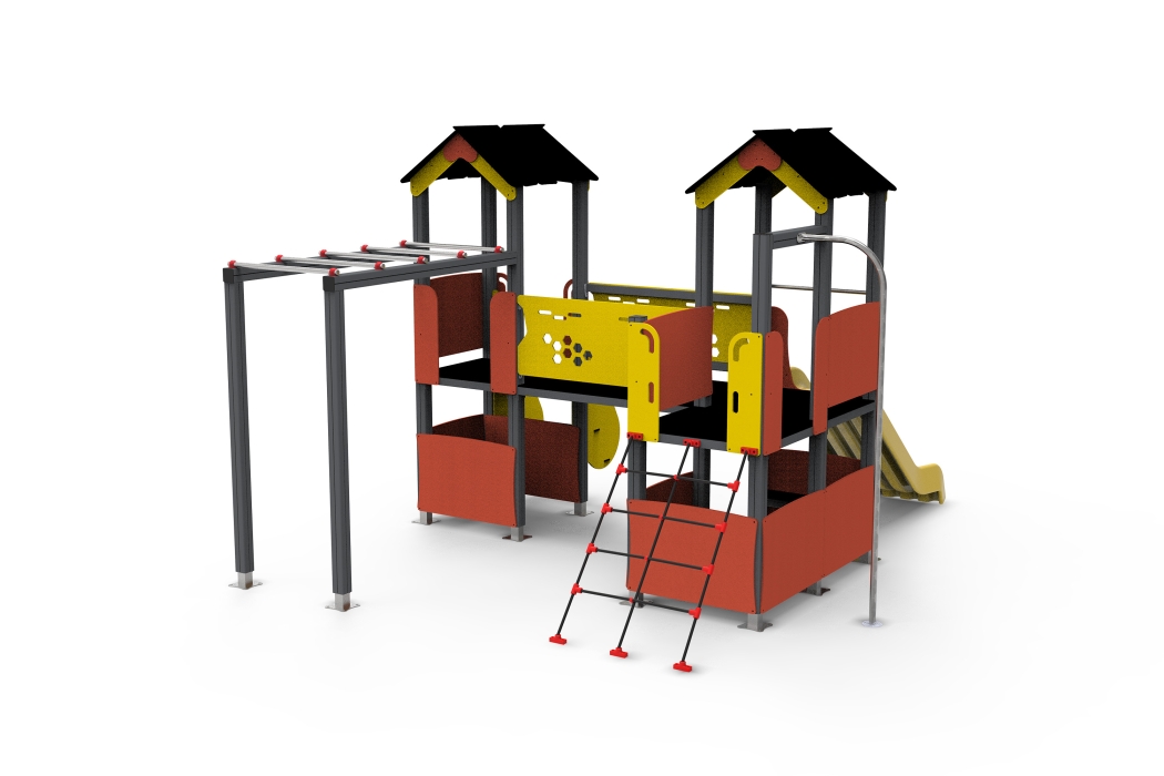 Home > Produtos > Parques Infantis > Multi Atividades > Estruturas > Dupla Torre com Casinha