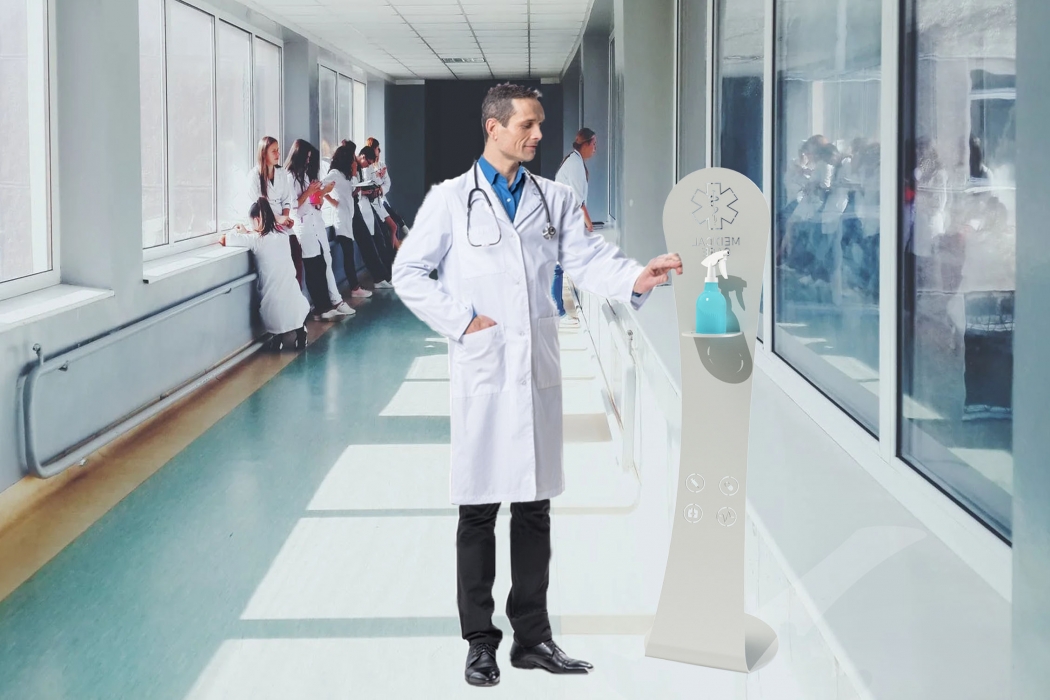 Home > Produtos > Dispensadores e desinfeção > Dispensadores com pedal e pulsador > Estrutura metálica para suporte de dispensador